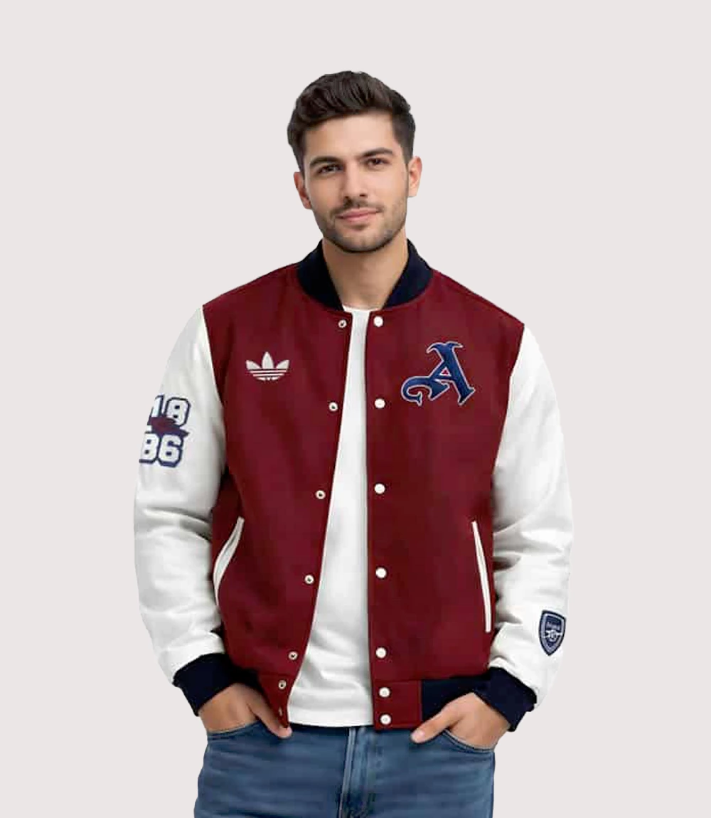 Celebrate your club’s history with the Arsenal Varsity Jacket, a premium lifestyle piece that bridges the gap between classic Americana and British football culture. This jacket is designed for the modern Gooner who demands a sophisticated, off-pitch look that still honors the club’s deep roots. At knitedge we highlight how this Adidas x Arsenal Letterman Jacket elevates sports fandom into a high-end streetwear statement.