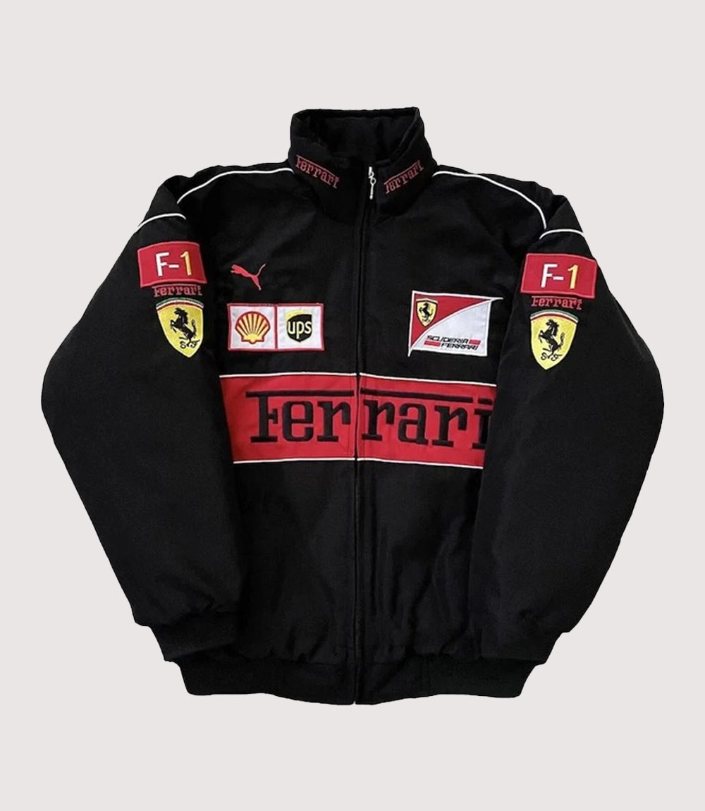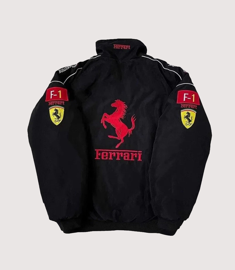 black Jared Leto Vintage Ferrari F1 Jacket