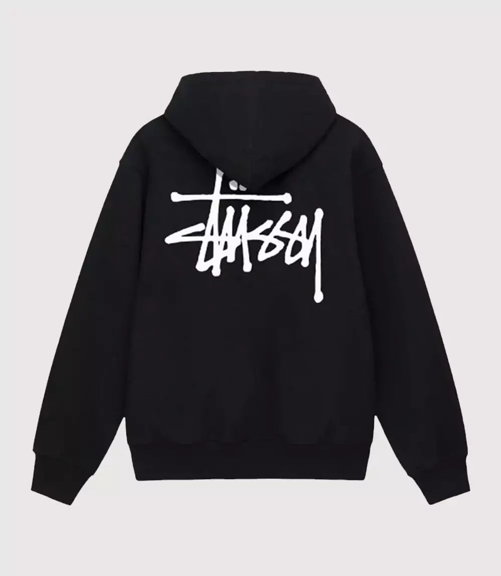 Classic black Stüssy hoodie with clean streetwear style and comfy fit.