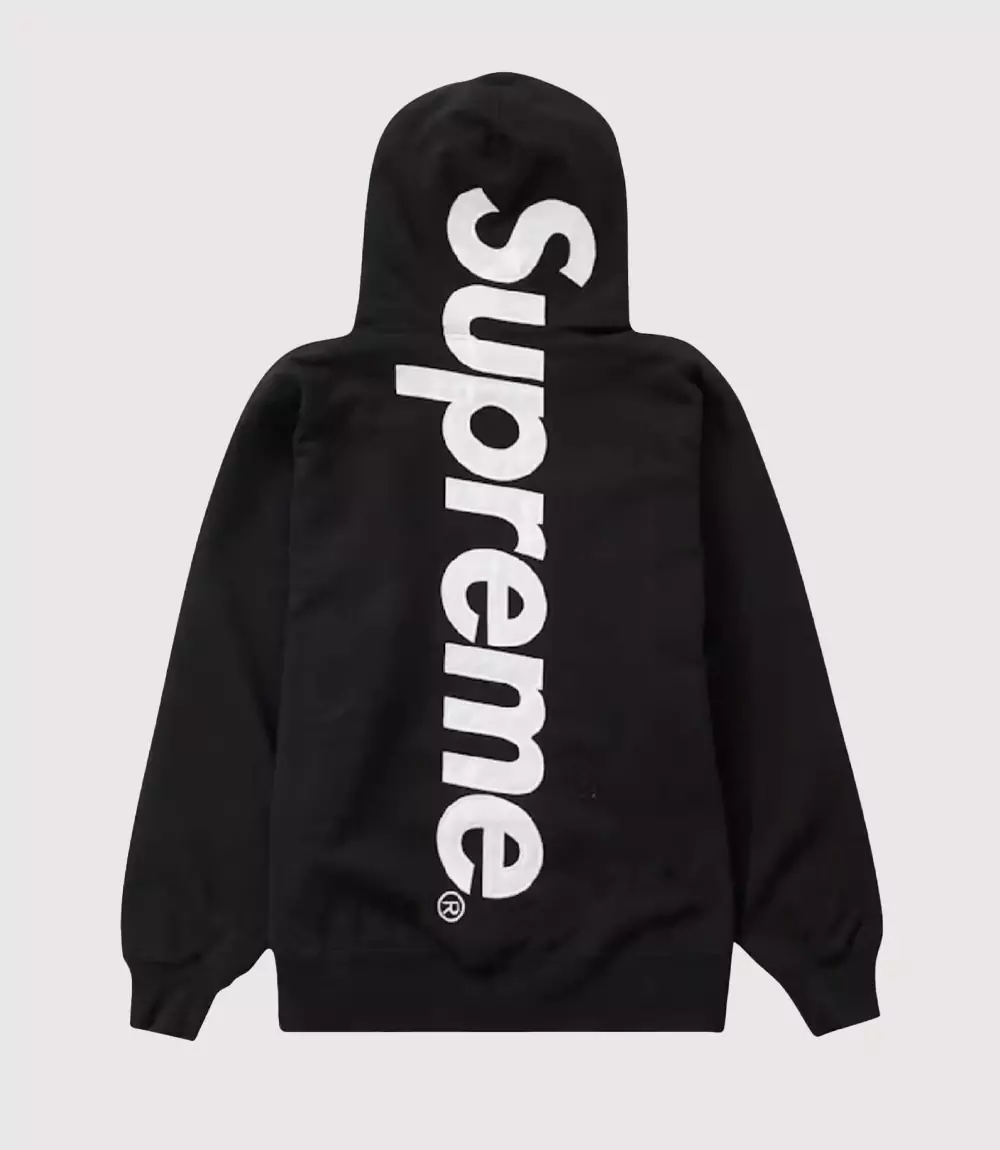 The Supreme Applique Hoodie is a standout piece of contemporary streetwear that blends the brand’s iconic minimalist aesthetic with specialized graphic treatments. Featured here in a deep matte black, this hoodie serves as a canvas for high-contrast applique lettering and commemorative patches. At knitedge we highlight this garment for its structured fit and the use of premium satin materials that elevate a standard pullover into a collector’s item.