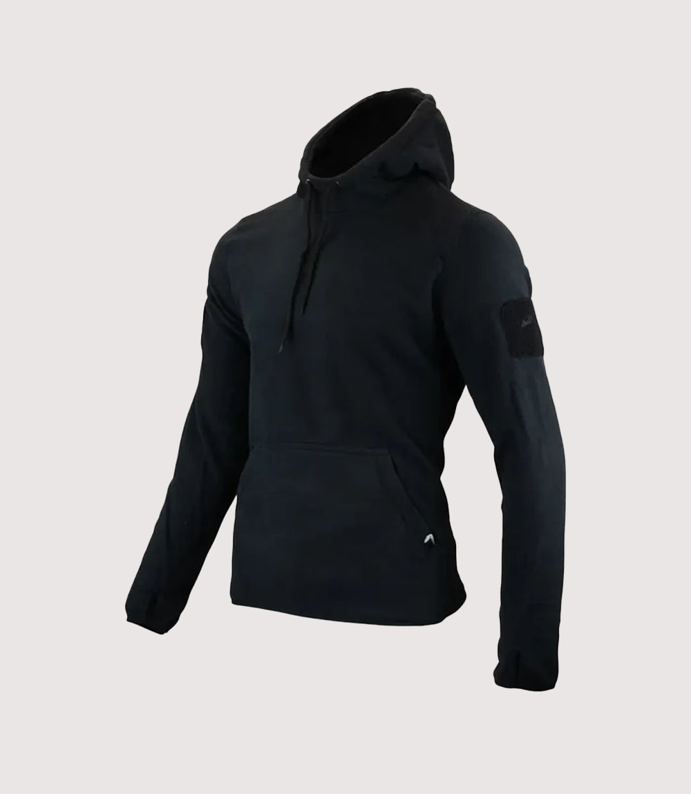 The Black Viper Fleece Hoodie is a specialized performance garment designed for those who require maximum utility without compromising a low-profile aesthetic. Engineered in a deep, matte black, this hoodie serves as a versatile primary layer for night operations, security professionals, or outdoor enthusiasts seeking a “covert” look. At knitedge we highlight this piece for its rugged simplicity and its ability to provide significant thermal protection while remaining streamlined enough to layer under heavy duty body armor or waterproof shells.