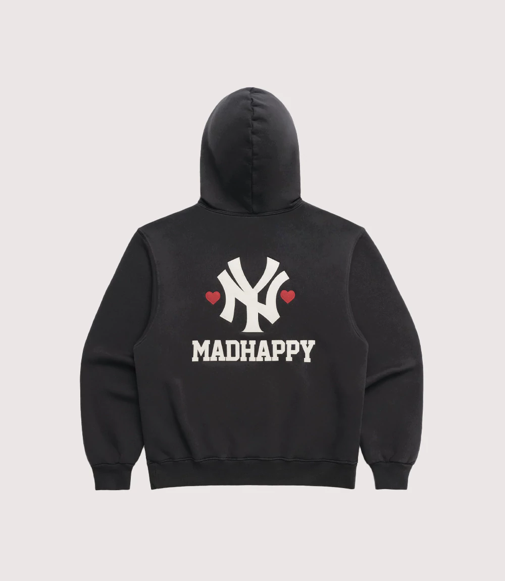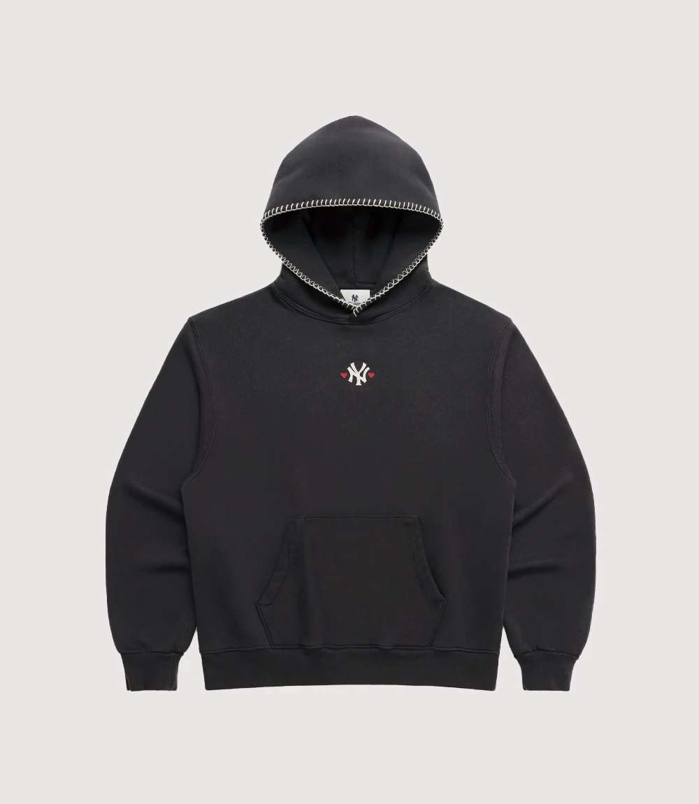A : The hearts are a creative addition by Off-White, intended to blend the competitive spirit of Major League Baseball with a “lifestyle” and emotive aesthetic. It distinguishes this Limited Edition Off-White Yankees Heart Hoodie from standard team merchandise.