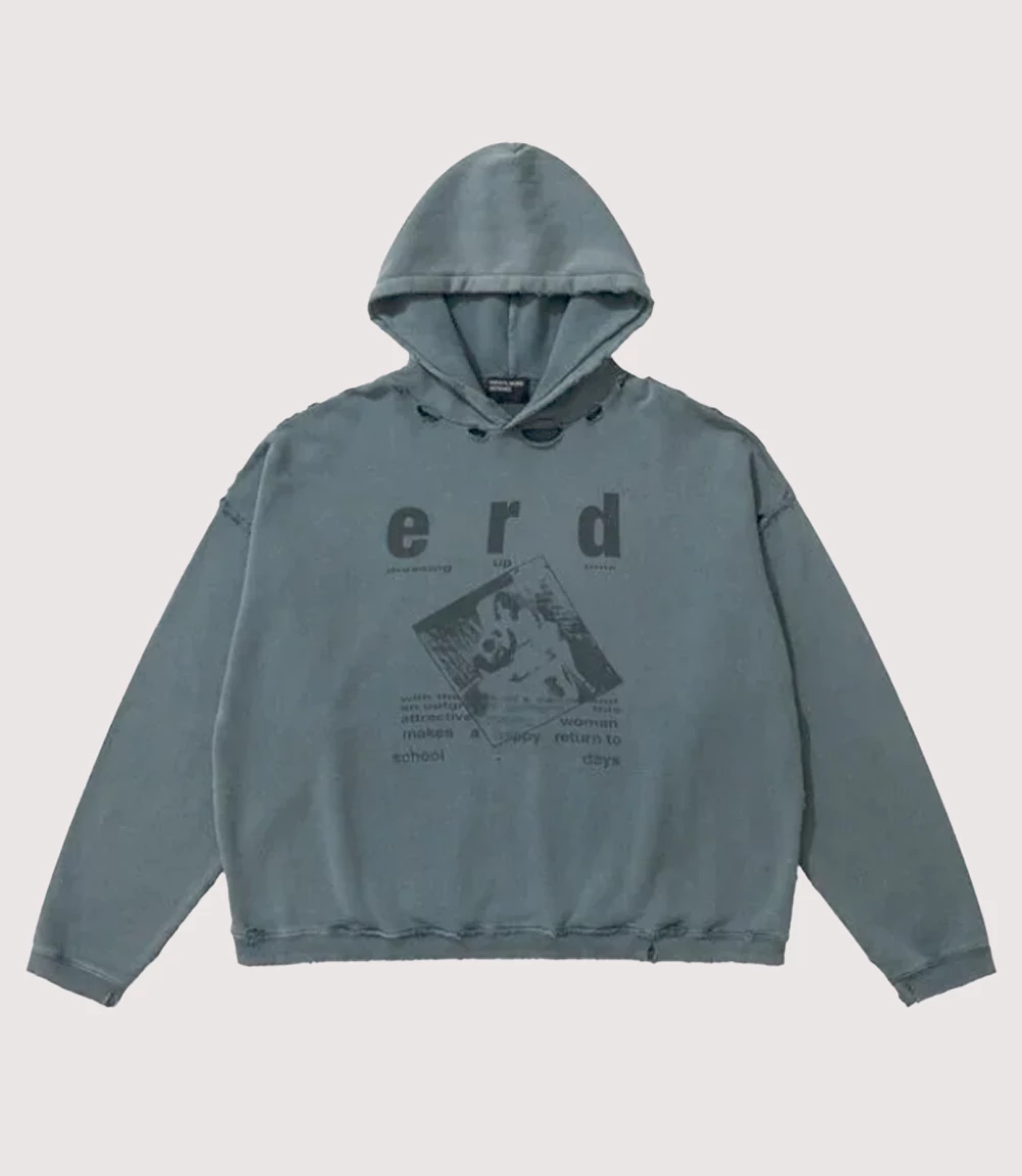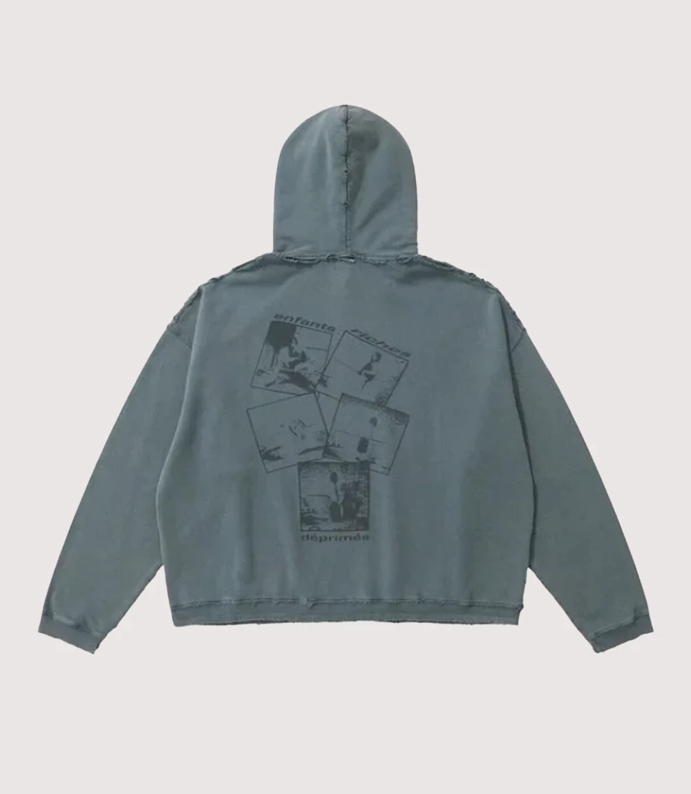 The Blue Enfants Riches Déprimés (ERD) Hoodie captures the brand’s signature “wealthy depressed children” ethos through a lens of cold, industrial color and aggressive distressing. Rendered in a muted slate or “petrol” blue, this Blue Enfants Riches Déprimés Hoodie avoids traditional brightness in favor of a desaturated, moody tone that complements the label’s punk-rock roots. At knitedge we highlight this ERD Distressed Blue Pullover for its elite construction and its refusal to conform to mainstream luxury standards.
