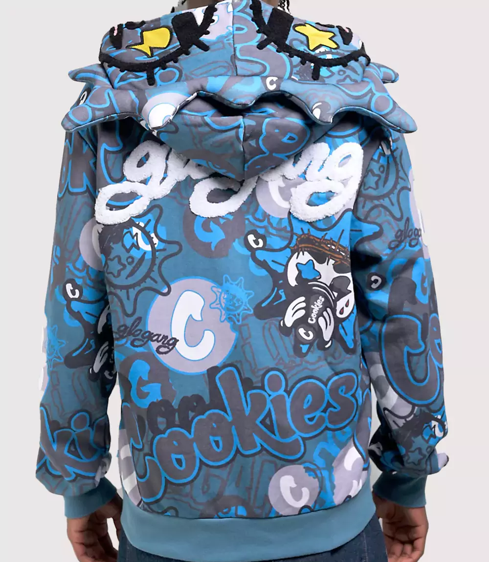 The visual centerpiece of this Chief Keef Glo Gang Sweatshirt is the iconic “Glo Man” logo, which features prominently in a multi-colored, playful graphic design. The “Glory Boyz” text is often rendered in a stylized, cartoonish font that creates a unique, high-contrast look against the solid blue base. knitedge notes that the Blue Glo Man Graphic Hoodie captures the brand’s signature “sunshine” motif, symbolizing a positive, high-energy outlook that has turned the collective into a global streetwear phenomenon known as Glo Gang Worldwide Streetwear.