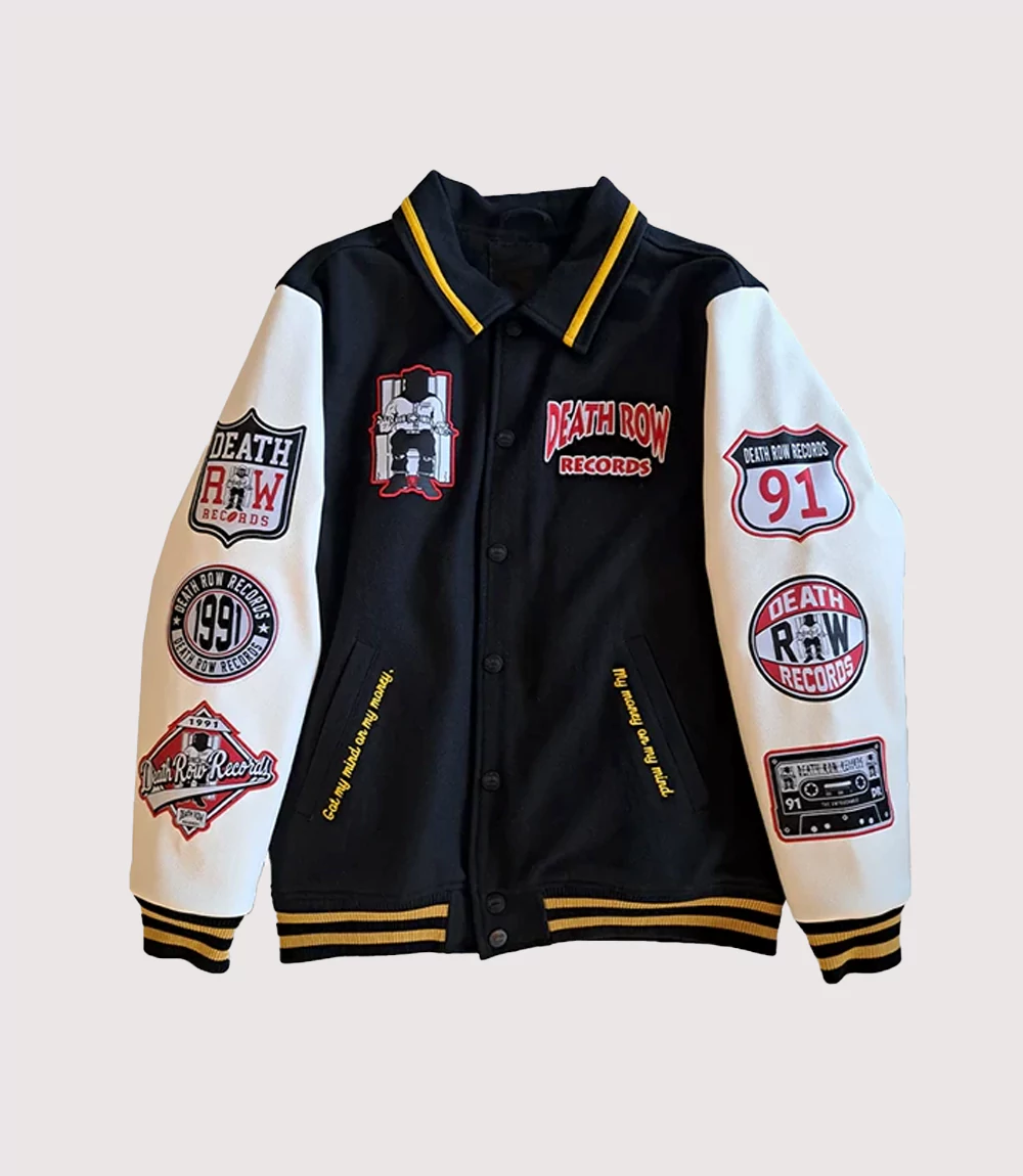 A : The “91” on the Death Row Records ’91 Varsity Jacket refers to 1991 the year Death Row Records was founded. This Death Row Records Patched Varsity Jacket serves as a commemorative piece for the label’s enduring legacy in the music industry.