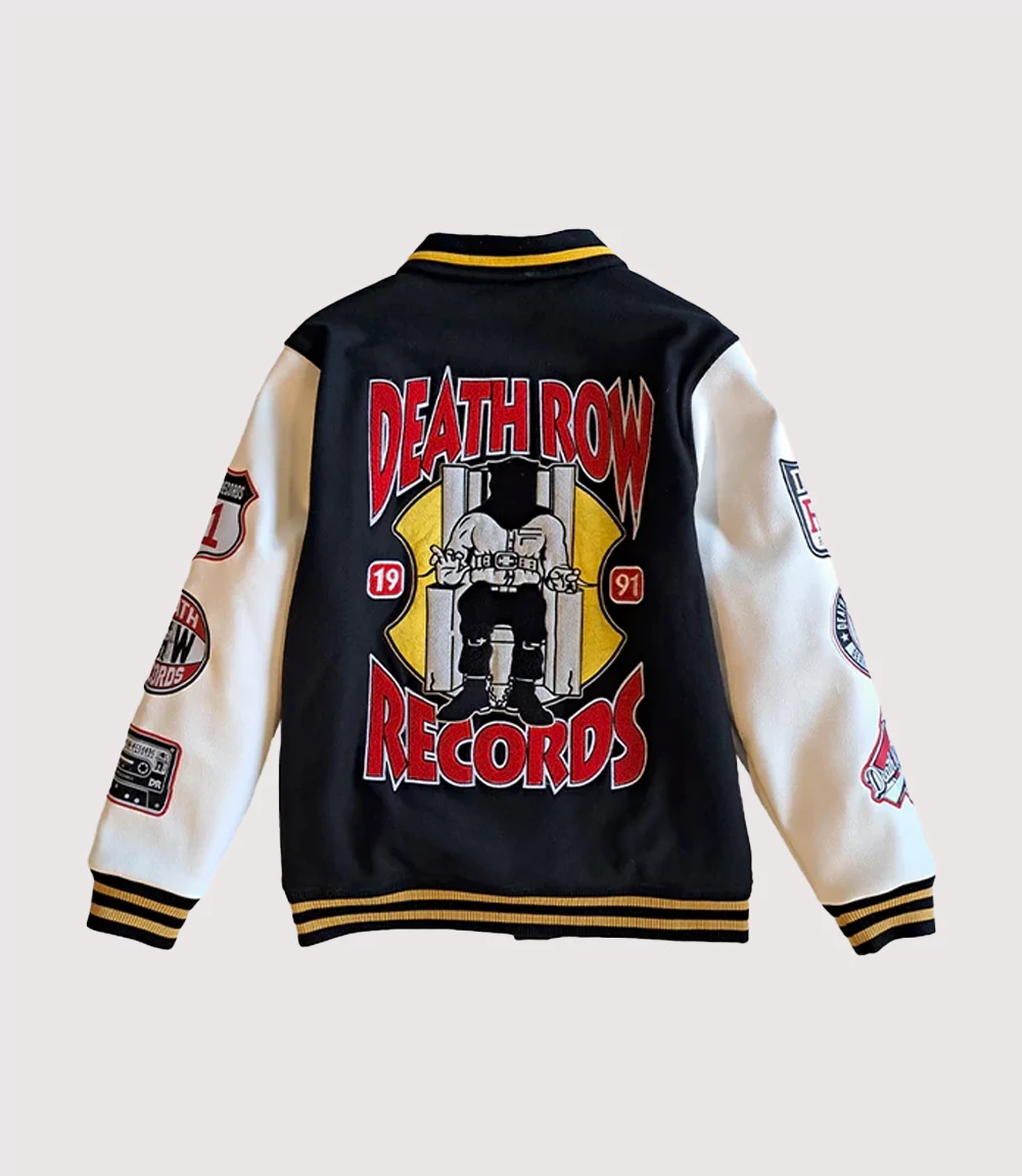 Own a piece of music history with the Death Row Records Patched Varsity Jacket. This iconic piece of outerwear pays homage to the legendary record label that defined the sound of 1990s West Coast rap. At knitedge we offer this Men’s Death Row Records Letterman Jacket meticulously designed to capture the raw energy and cultural dominance of the label’s founding era.