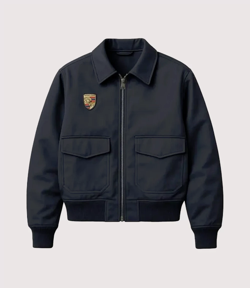 The Dua Lipa Porsche Motorsports Jacket features a sleek, midnight black technical shell that offers a structured yet lightweight feel. Its minimalist design is elevated by the iconic Porsche crest embroidered on the right chest, symbolizing a legacy of speed and precision. knitedge ensures that every Premium Porsche Crest Zip-Up Jacket captures the exact aesthetic seen in the Monaco paddock, featuring a sharp fold-down collar large utility-style front flap pockets, and a clean full-zip closure. With its elasticized cuffs and slightly cropped waist, this Official Porsche x Dua Lipa F1 Apparel provides a modern, feminine silhouette that is perfect for trackside events or urban adventures.
