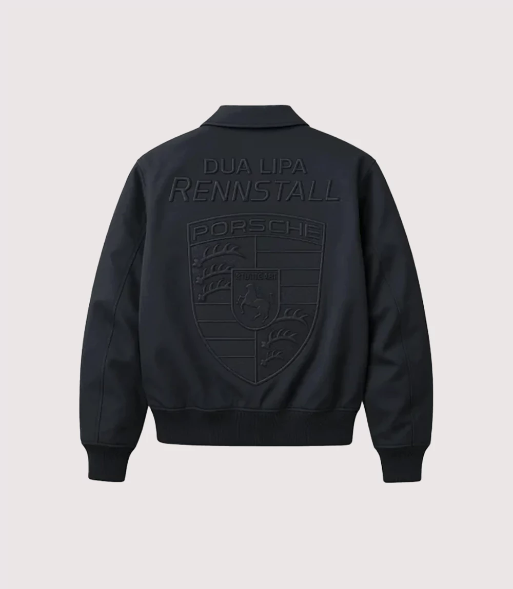 Capture the elite energy of the world’s most prestigious race with the F1 Grand Prix Monaco Dua Lipa Porsche Jacket. Inspired by the bold paddock style of global pop icon Dua Lipa, this jacket blends the heritage of Porsche Motorsports with the fast-paced glamour of the Monaco circuit. At knitedge we are proud to offer this Women’s Black Porsche Racing Bomber designed for those who want to merge automotive excellence with high-fashion streetwear.