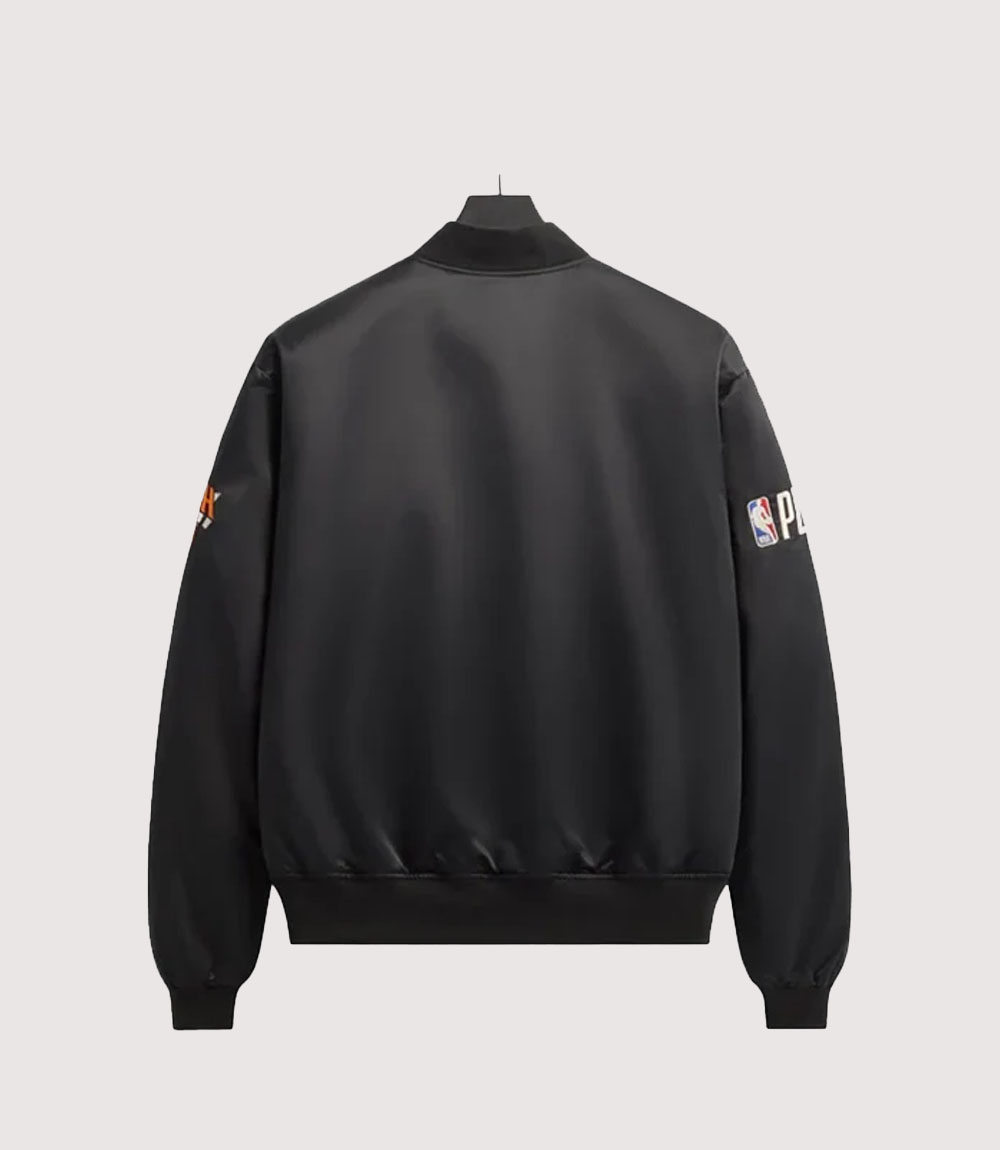 The Armani Kith Knicks Wool Bomber for Men is the high-luxury flagship of the collection ($5,500), while the Kith Knicks 2026 Playoffs Jacket Women also comes in a standard satin version ($275). knitedge highlights the 100% wool construction and suede artwork as the defining luxury traits of the Armani collaboration.