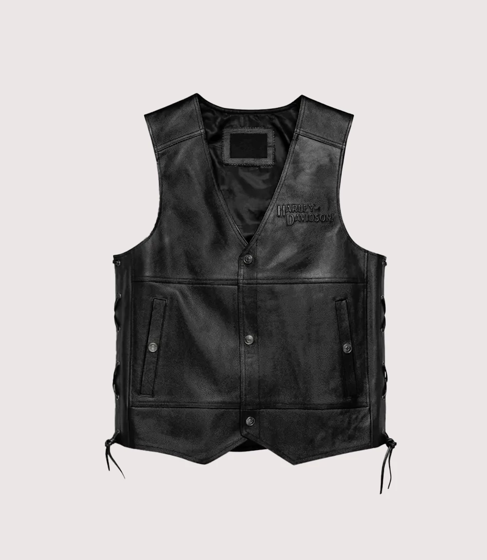 This Genuine Cowhide Motorcycle Vest is constructed from premium mid-weight leather featuring a classic V-neckline and a secure four-button snap front closure. A standout feature of this Side-Lace Harley Leather Waistcoat is the adjustable side lacing, which allows for a customized fit over heavy flannel or lightweight tees. knitedge ensures that every Official Harley Davidson Tradition Gear item includes thoughtful details, such as the subtle tonal embroidered “Harley-Davidson” logo on the left chest and two functional front hand-warmer pockets. Whether you are attending a rally or cruising solo this Vintage Harley Davidson V-Neck Vest serves as the perfect Essential Biker Lifestyle Leather Apparel for personalizing with your own club patches and pins.