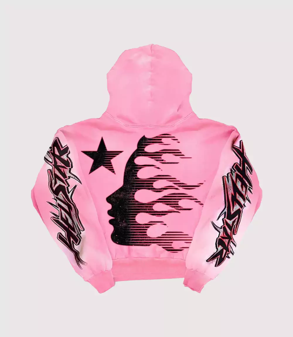 The Pink Hellstar Hoodie is a high-impact garment that embodies the fast-paced, “Earth is Hell” philosophy of one of the most explosive brands in modern streetwear. Drenched in a bold, neon-adjacent pink, this hoodie serves as a vibrant canvas for Hellstar’s signature celestial and record-label motifs. At knitedge we highlight this piece for its unique blend of Y2K pixel art and contemporary heavy-metal aesthetics, making it a definitive statement piece for collectors and trendsetters in 2026.