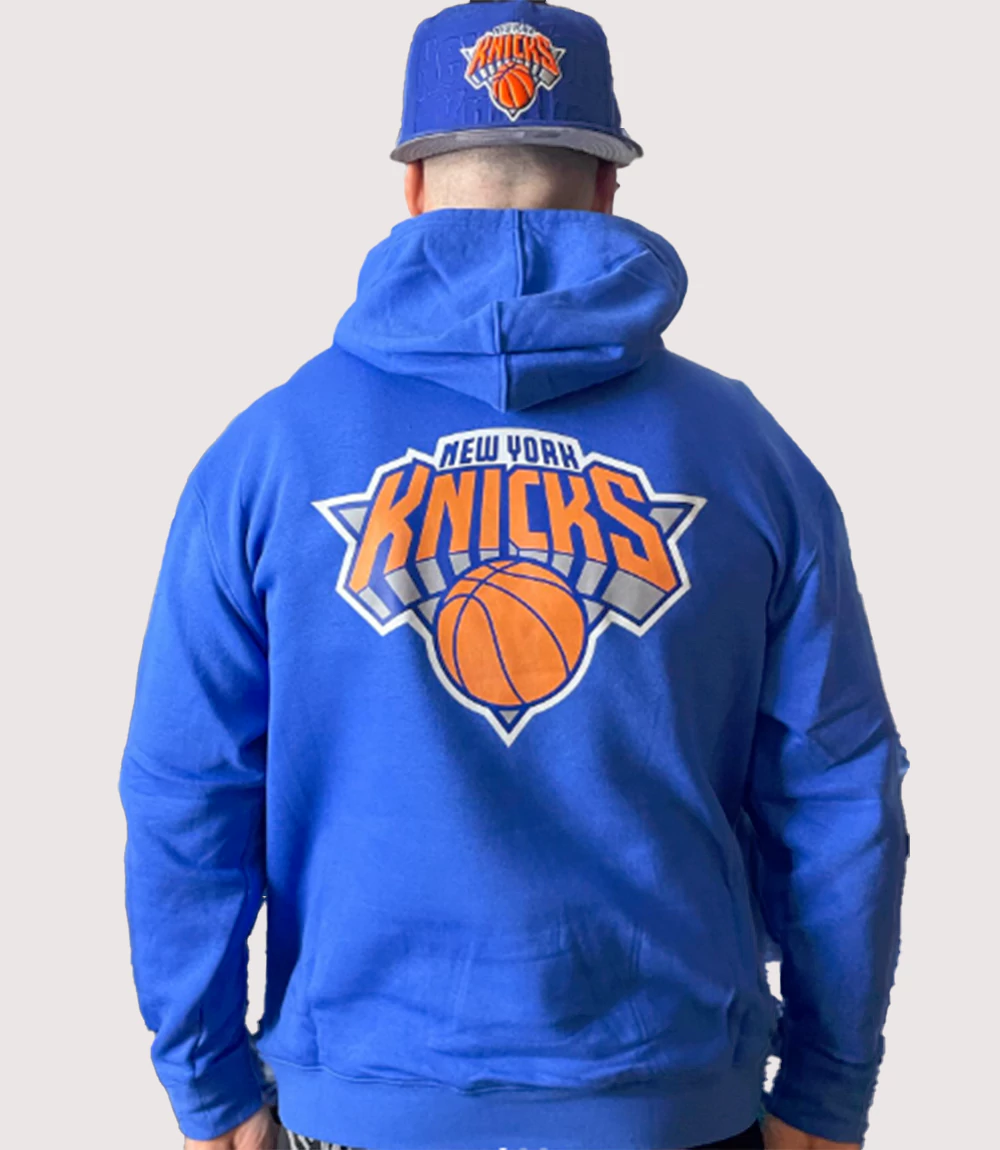 A : Homage apparel typically features a more “standard” or slightly slim fit compared to oversized streetwear brands. knitedge recommends ordering your true size for a tailored look, or sizing up if you prefer a looser, more relaxed Men’s Blue New York Knicks Pullover Hoodie fit.