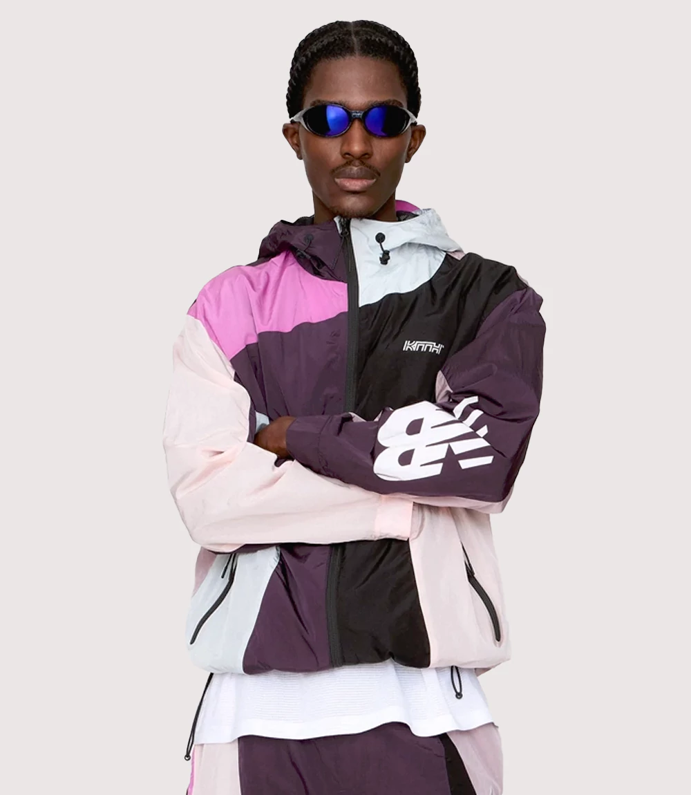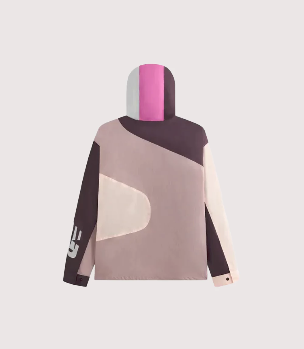 The Madison IV Multi-Color Tech Jacket features a sophisticated color-blocked palette of pink, cream, black, and deep plum, creating a visually striking and modern look. Constructed from lightweight water-resistant fabric it is designed to handle transitional weather while maintaining a sharp silhouette. knitedge ensures that every Kith New Balance Hooded Training Gear item is equipped with performance-focused details, including an adjustable hood with a protective brim, secure zippered hand pockets, and co-branded logos on the chest and sleeve. Whether you are navigating city streets or heading to a workout this Premium Color-Block Athletic Outerwear provides the perfect balance of comfort and elite style.