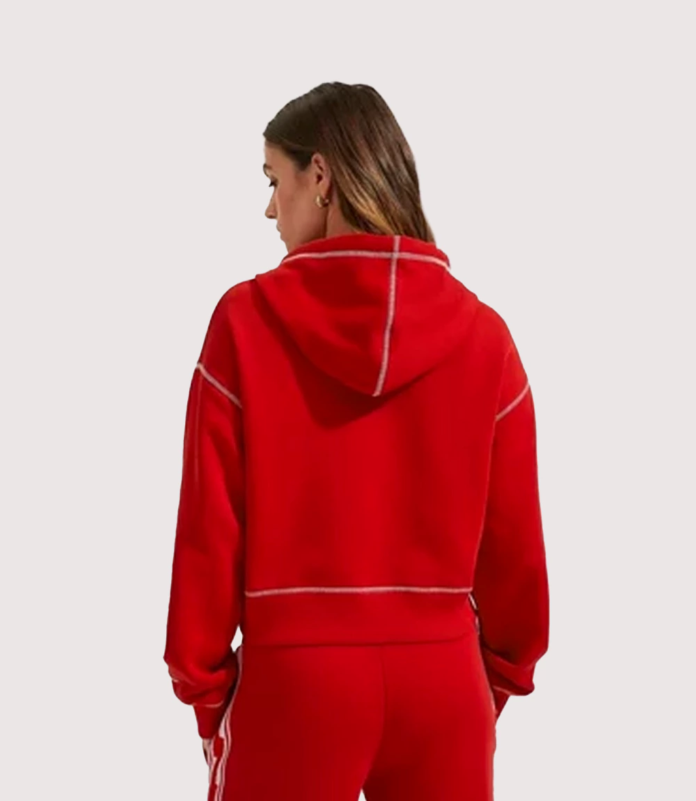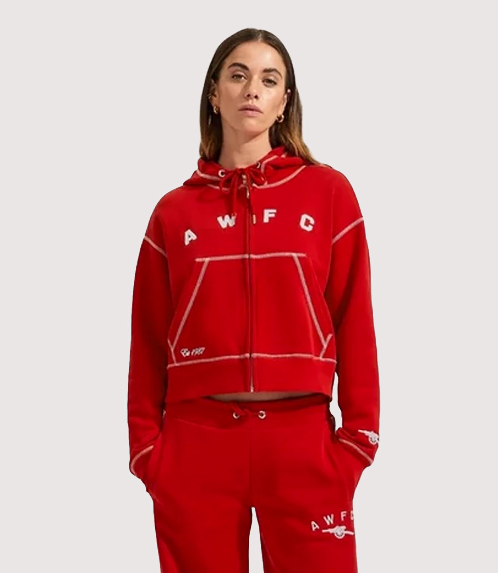 Bold red hoodie with a stylish Arsenal women’s team vibe.