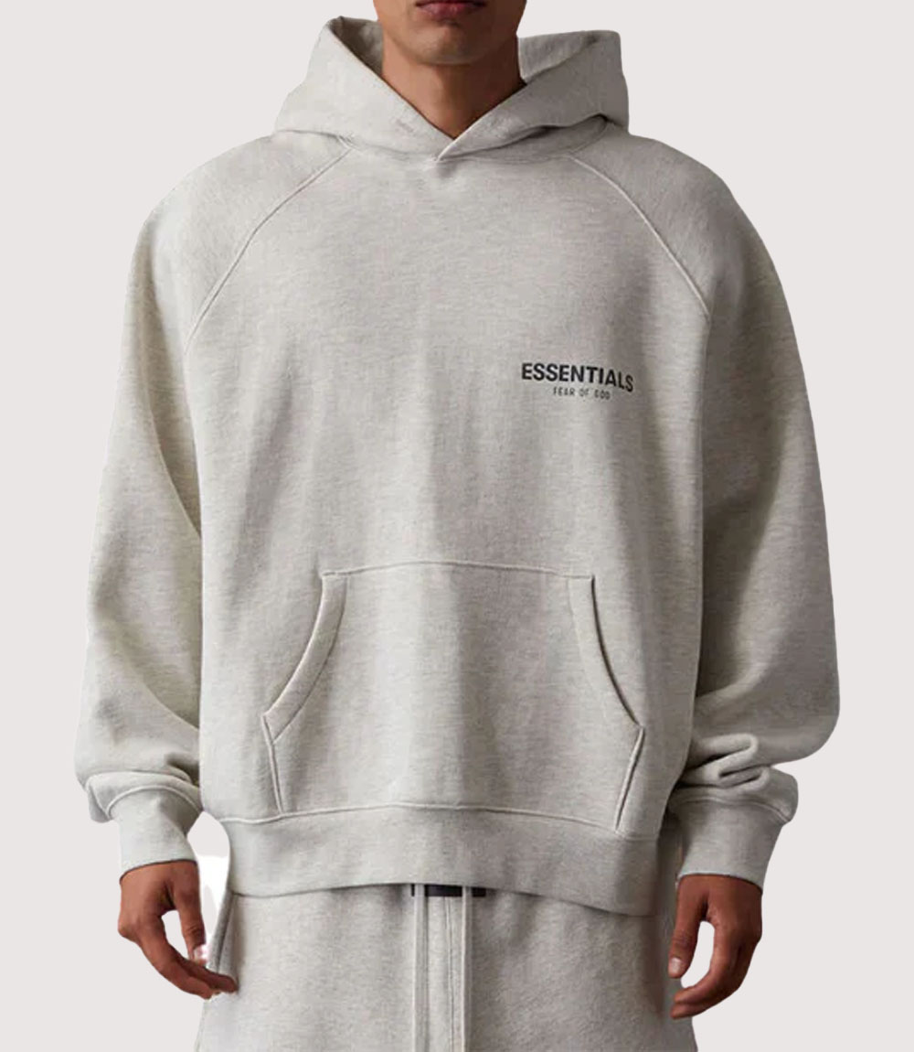 A: Because the Oatmeal Heather Essentials Apparel uses a double-layered construction for the hood, it is much more structured than a typical sweatshirt. knitedge highlights that this allows the hood to maintain its shape and sit prominently on the shoulders, contributing to the jacket’s signature architectural profile.