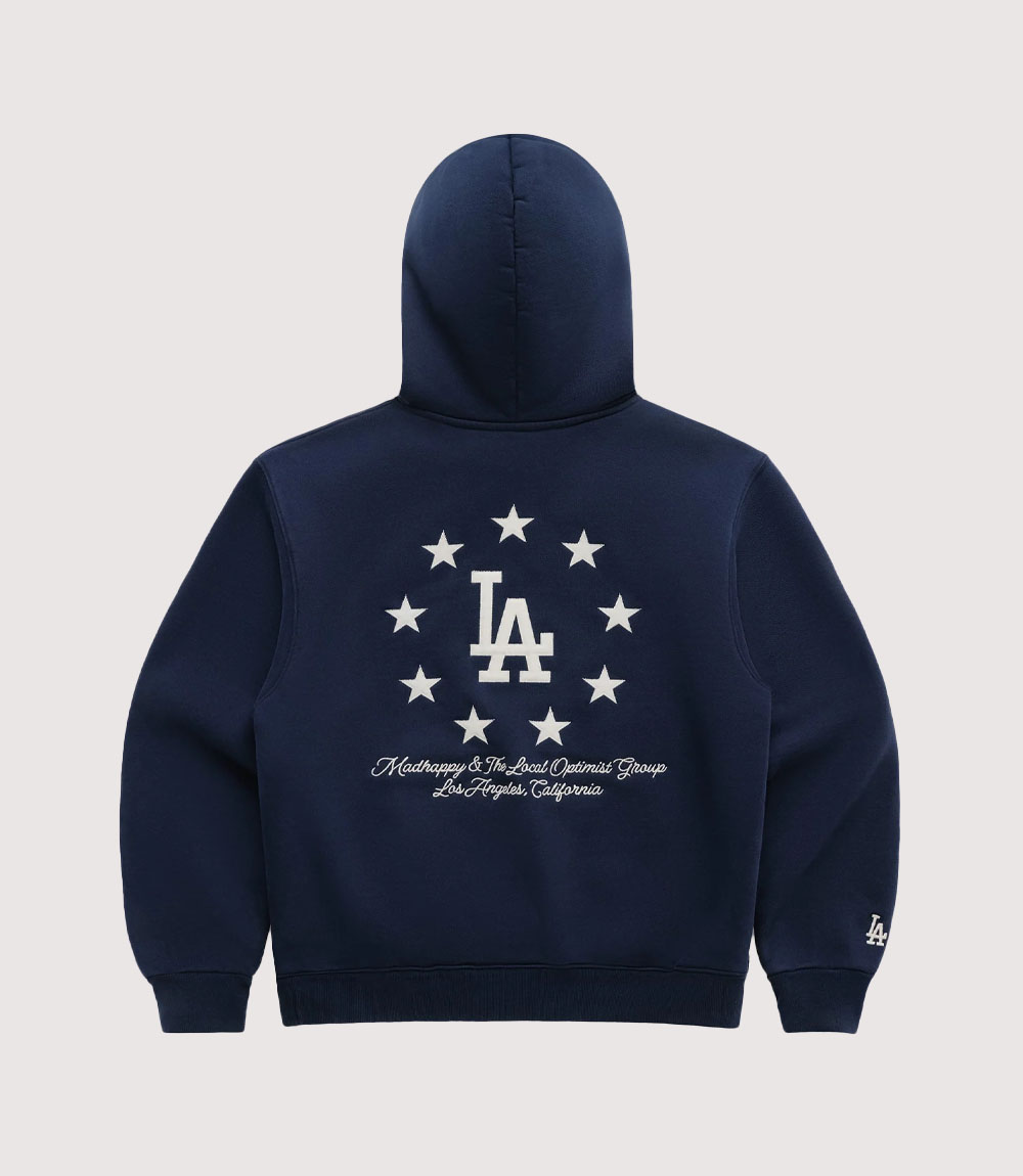 Constructed from a heavyweight, ultra-soft cotton fleece, the Madhappy x LA Dodgers World Series Fleece is engineered for both comfort and longevity. A standout design element of this Madhappy Heritage Stitch Dodgers Hoodie is the contrast blanket stitching in white that lines the entire rim of the hood, a signature detail of Madhappy’s premium collections. knitedge emphasizes that this artisanal touch, combined with the structured hood and durable ribbed-knit trims, makes it a superior piece of Co-branded Madhappy Dodgers Navy Pullover gear suitable for both game days and everyday lifestyle wear.