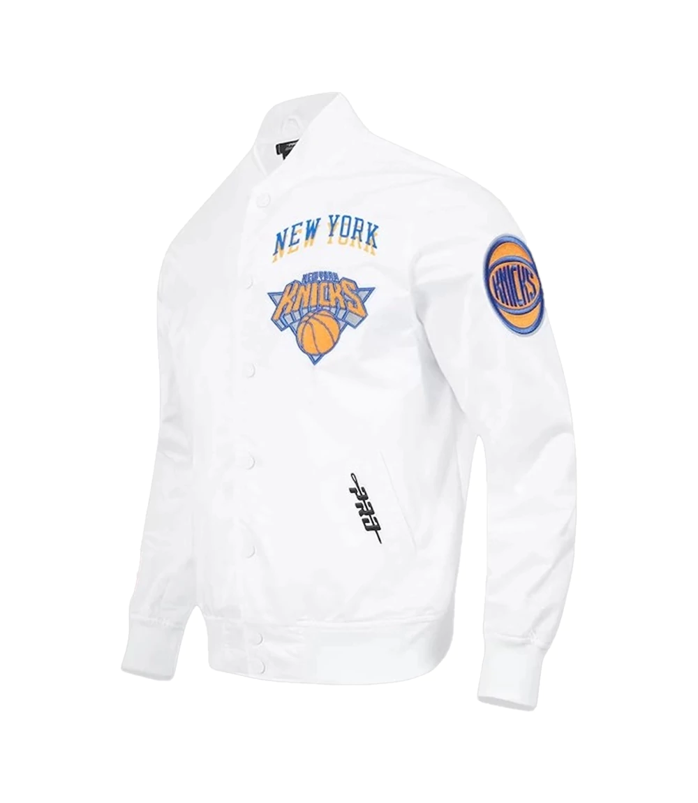 Elevate your fan aesthetic with the New York Knicks Pro Standard White Satin Jacket. This piece blends high-fashion luxury with the gritty soul of New York basketball, offering a crisp, clean alternative to traditional team colors. At knitedge we provide this Men’s Pro Standard Knicks Satin Bomber, meticulously crafted for the fan who wants to represent the blue and orange with a sophisticated, streetwear-inspired edge.