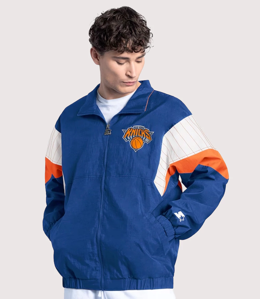 Take your fan game to the next level with the New York Knicks Starter Yard Line Full-Zip Jacket a dynamic piece designed for those who live and breathe blue and orange. This jacket captures the high-energy spirit of Manhattan basketball, offering a sharp modern silhouette that remains deeply rooted in sports heritage. At knitedge we provide this Men’s Blue and Orange Knicks Windbreaker ensuring you stay comfortable whether you’re cheering from the front row or hitting the city streets.