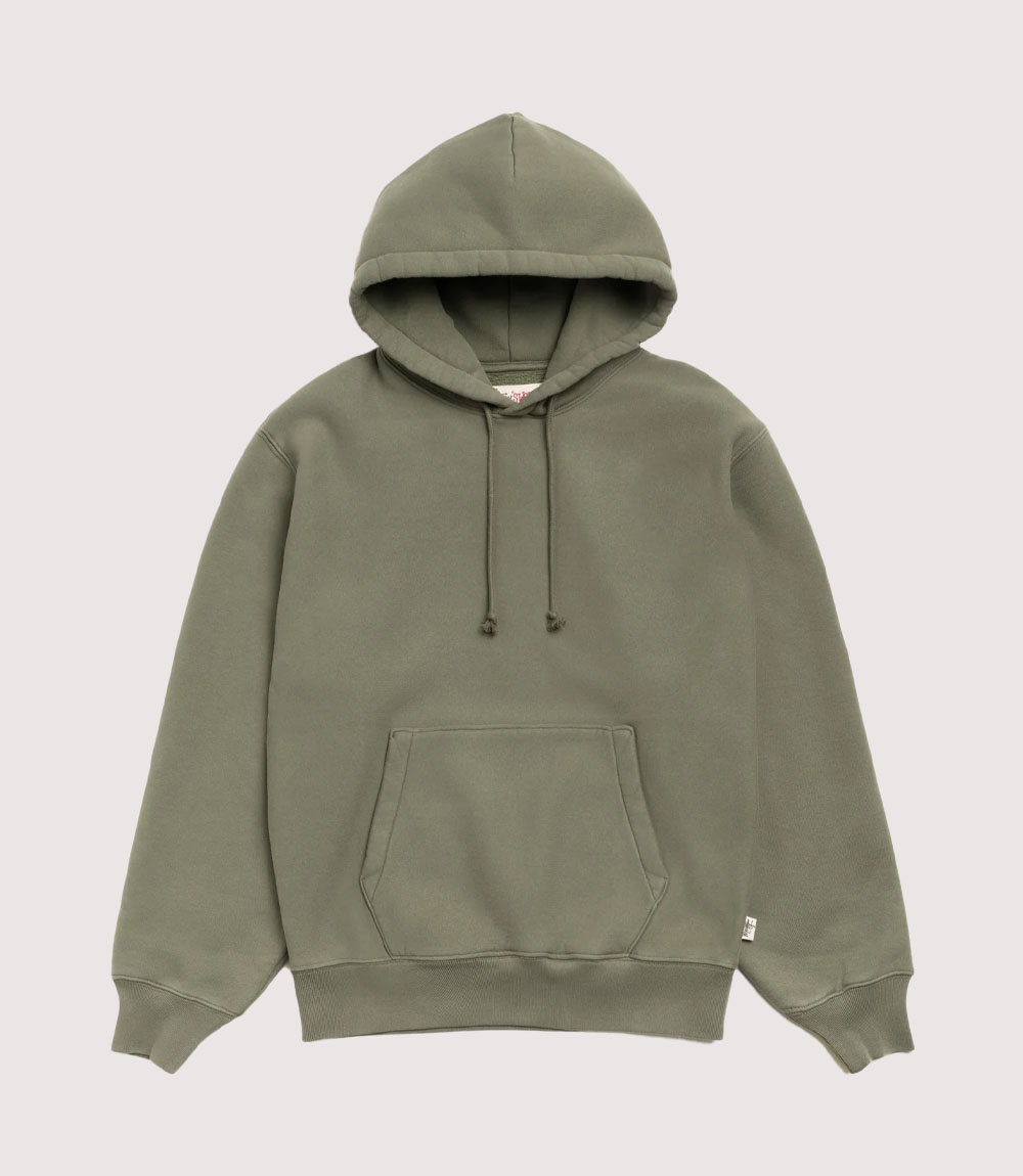 A: Due to the high-density weave of the Stüssy Brushed Cotton Hoodie Green, it is highly resistant to pilling. knitedge advises washing the hoodie in cold water and hanging it to dry to preserve the soft brushed interior and the rich moss green pigment.