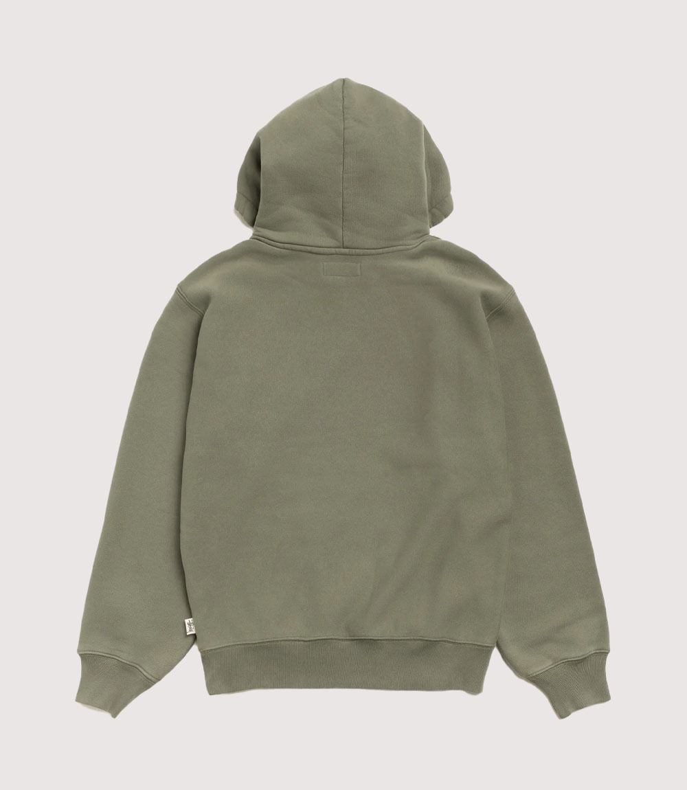 The visual identity of this Olive Stüssy Stock Logo Hoodie is rooted in understated minimalism. The design is intentionally clean, featuring a blank chest that allows the rich texture of the fabric and the structural silhouette to take center stage. knitedge notes that the iconic Stüssy branding is often subtly placed, such as on a small woven flag label at the side seam, ensuring the garment remains versatile enough for both high-fashion layering and casual daily wear.