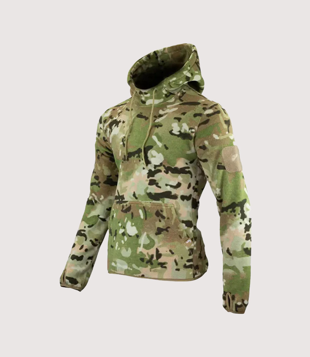 Constructed from a dense, thermal polyester fleece, the Green Camouflage Tactical Hoodie offers excellent moisture-wicking properties and breathability. The garment is tailored with an athletic, ergonomic fit to reduce bulk when worn under a plate carrier or a waterproof outer shell. knitedge emphasizes the hoodie’s reinforced stitching and large front kangaroo pocket, ensuring that critical gear remains accessible and the garment withstands the rigors of field use in any terrain.