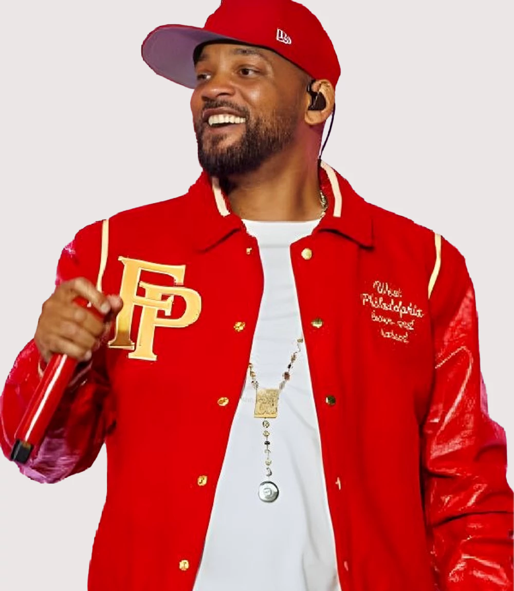 A : Yes, Will Smith wore the Red Will Smith Summertime Ball Varsity Jacket throughout the majority of his and DJ Jazzy Jeff’s electric set at Wembley Stadium in June 2025. It was a central part of his “summer vibes” stage persona for the event.